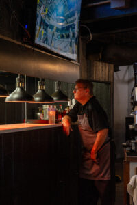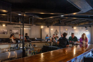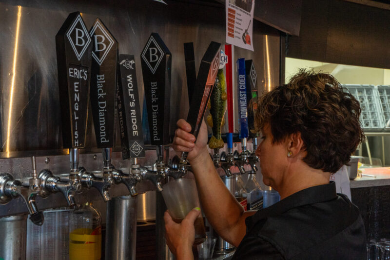 Circleville diners enter under the black awning marked with a “B.” Patrons sit in candlelit booths, enjoying filet mignon and bourbon. To the back, guests gather in a casual taproom. A chef puts a tray of sliders on the windowsill under the scarlet light. General Manager Nicole Pesa pours beer into a glass from the tap beside the kitchen…