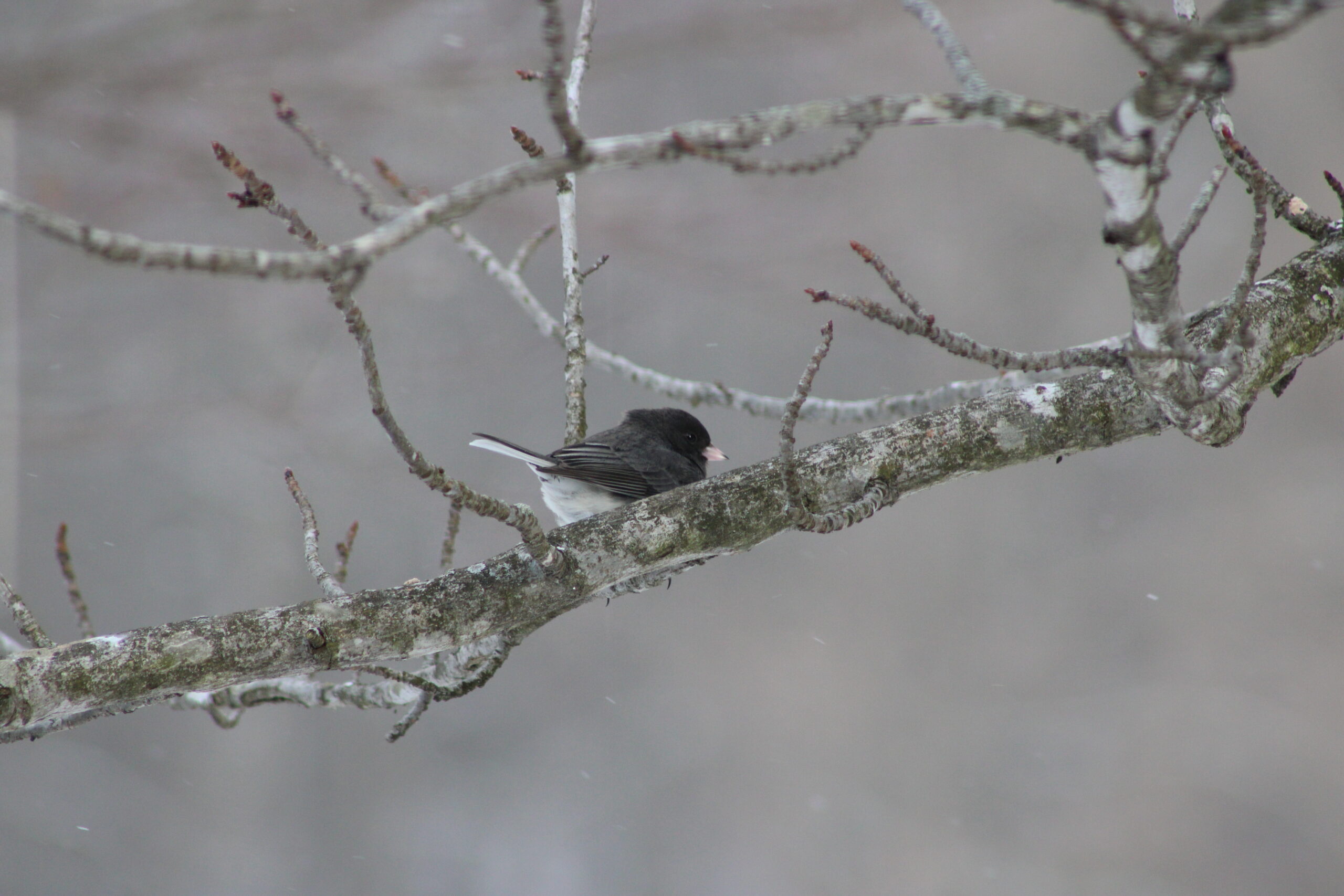 A migratory sparrow species commonly found across Ohio during late fall, winter and early spring. This small, dark gray bird can easily be found in a plethora of habitats, such as fields, roadsides, forests and backyards. Juncos forage on the ground for seeds with their sharp, pink beaks and in flight have distinctive white lines that edge their tail feathers. During the beginning of spring, Juncos sing beautiful trill songs.